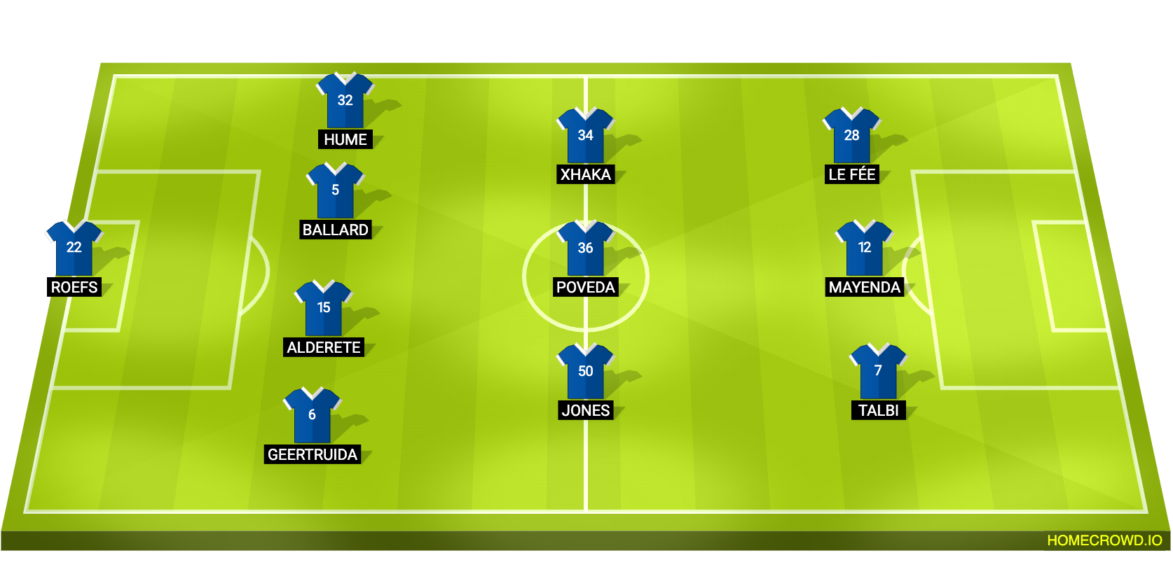 Probable Line-up (4-3-3): Roefs; Geertruida, Alderete, Ballard, Hume; Jones, Poveda, Xhaka; Talbi, Mayenda, Le Fee