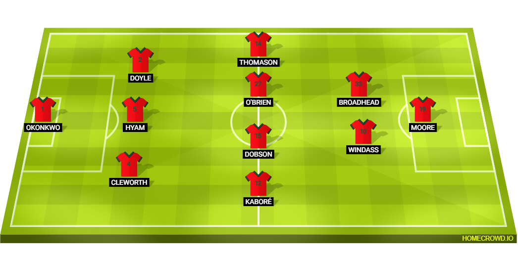 Probable Lineup (3-4-2-1): Okonkwo; Cleworth, Hyam, Doyle; Kabore, Dobson, O’Brien, Thomason; Windass, Broadhead; Moore