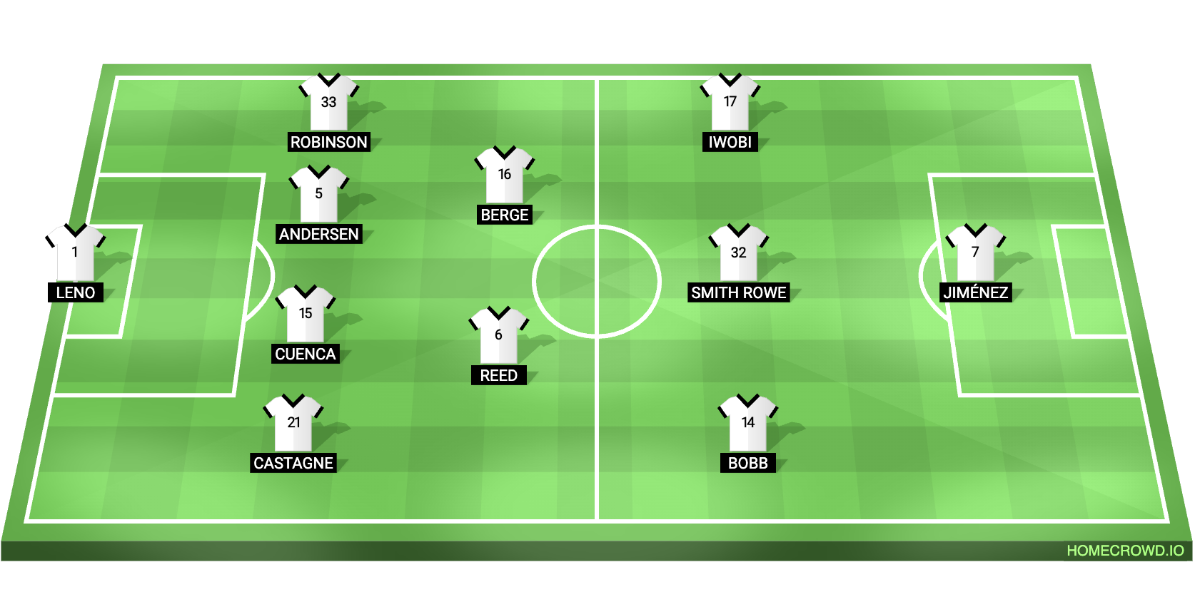 Probable Lineup (4-2-3-1): Leno, Castagne, Andersen, Cuenca, Robinson; Reed, Berge; Bobb, Smith Rowe, Iwobi; Jimenez