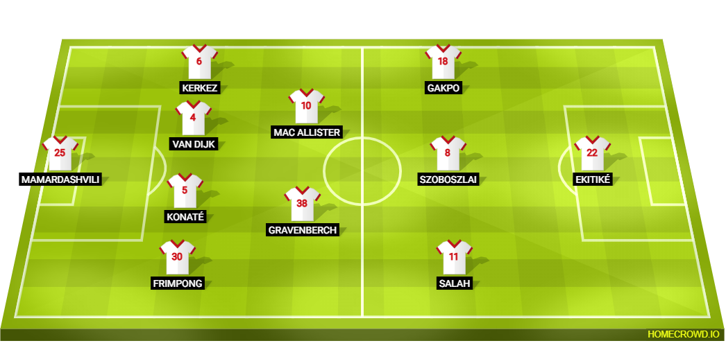 Probable Lineup (4-2-3-1): Mamardashvili; Frimpong, Konate, van Dijk, Kerkez; Gravenberch, Mac Allister; Salah, Szoboszlai, Gakpo; Ekitike