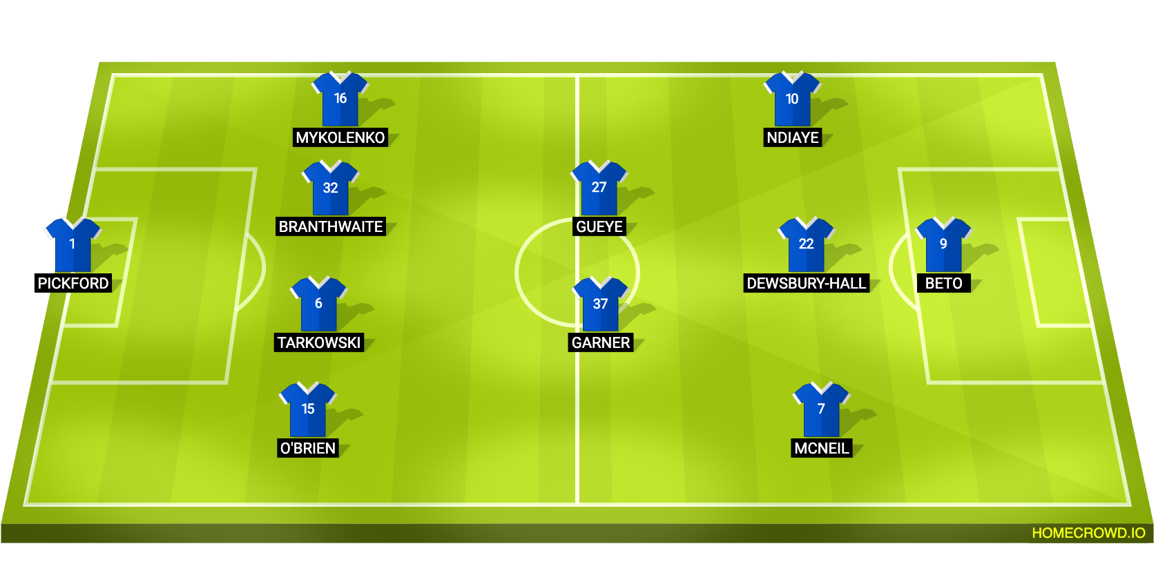Probable Lineup (4-2-3-1)Pickford; O’Brien, Tarkowski, Branthwaite, Mykolenko; Garner, Gueye; McNeil, Dewsbury-Hall, Ndiaye; Beto