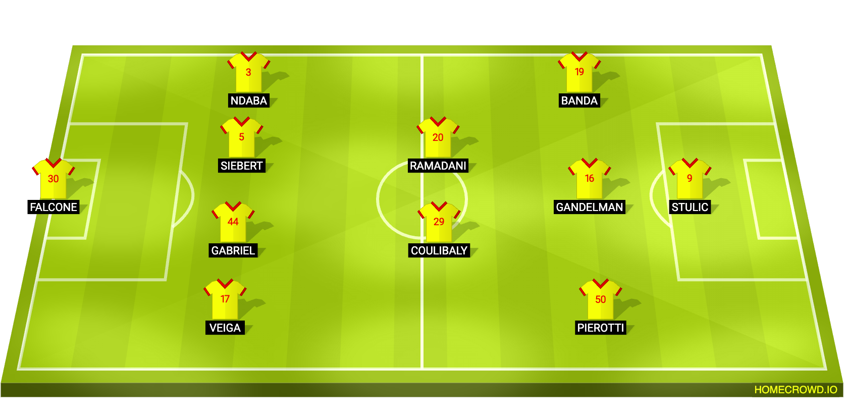 Probable Lineup (4-2-3-1): Falcone; Veiga, Gabriel, Siebert, Ndaba; Coulibaly, Ramadani; Pierotti, Gandelman, Banda; Stulic