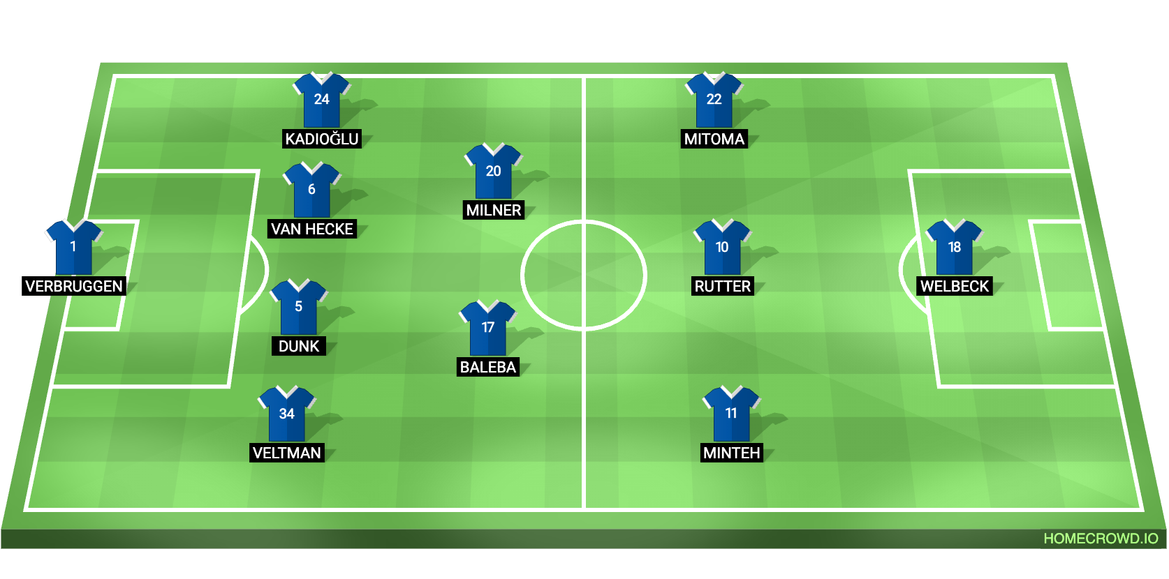 Probable Lineup (4-2-3-1): Verbruggen; Veltman, Dunk, van Hecke, Kadioglu; Baleba, Milner; Minteh, Rutter, Mitoma; Welbeck