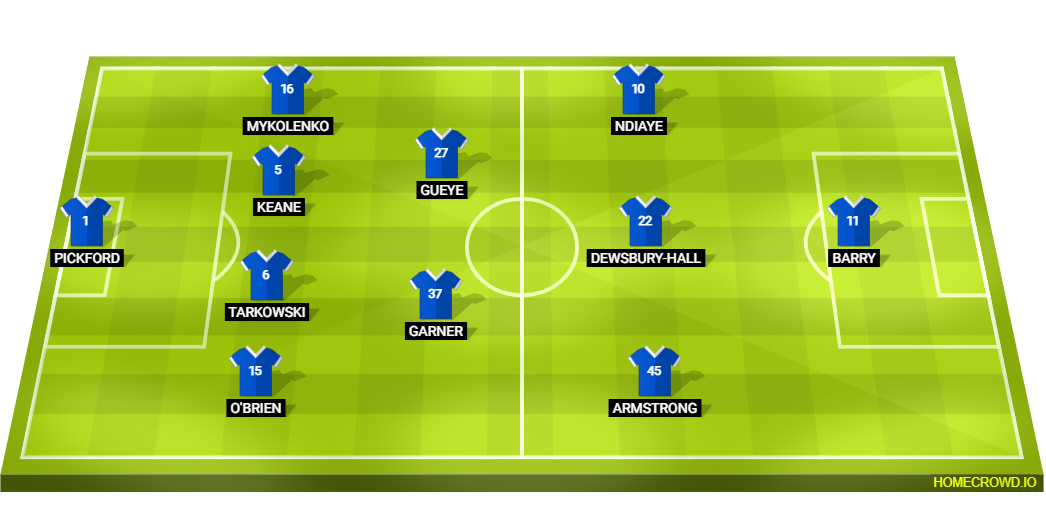 Probable Lineup (4-2-3-1): Pickford; O’Brien, Tarkowski, Keane, Mykolenko; Garner, Gueye; Armstrong, Dewsbury-Hall, Ndiaye; Barry
