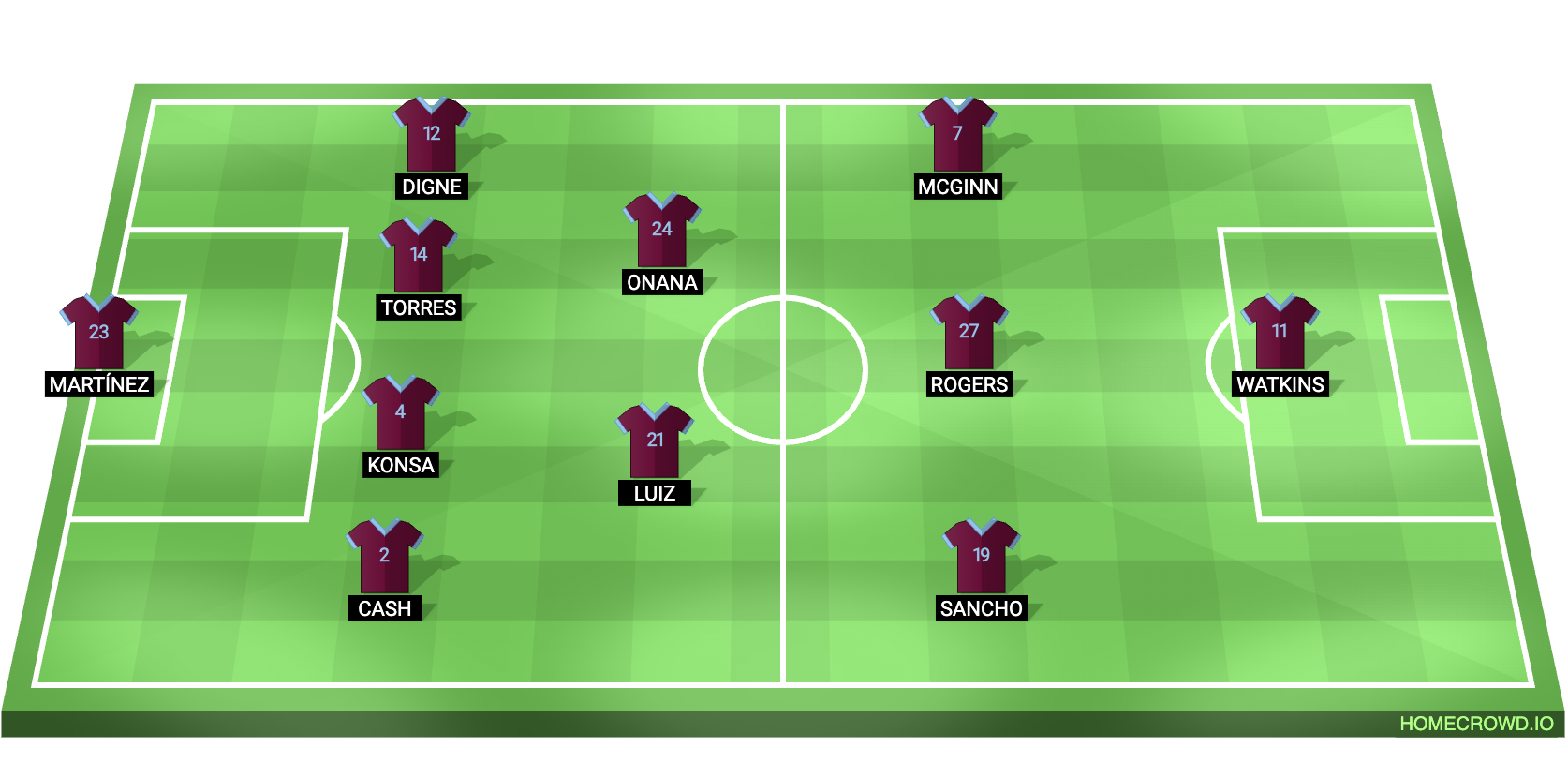 Probable Lineup (4-2-3-1): Martinez; Cash, Konsa, Torres, Digne; Onana, Luiz; McGinn, Rogers, Sancho; Watkins