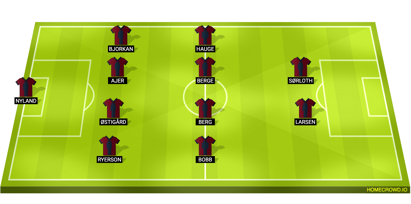 Probable Lineup (4-4-2): Nyland; Ryerson, Ostigard, Ajer, Bjorkan; Bobb, Berg, Berge, Hauge; Strand Larsen, Sorloth
