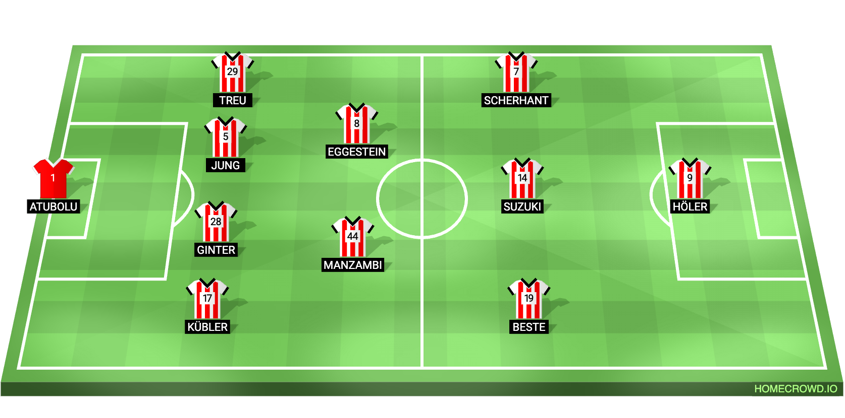 Probable lineup (4-2-3-1): Atubolu; Kubler, Ginter, Jung, Treu; Manzambi, Eggestein; Beste, Suzuki, Scherhant; Holer