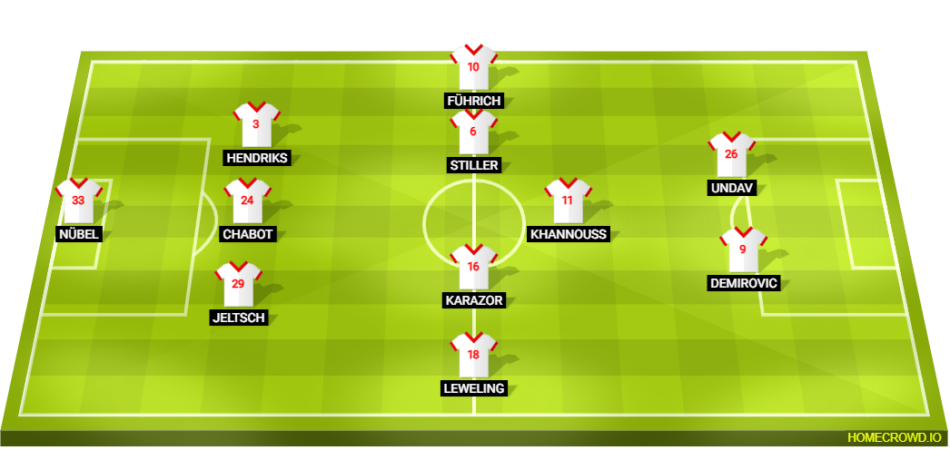 Probable Lineup (3-4-1-2): Nubel; Jeltsch, Chabot, Hendriks; Leweling, Karazor, Stiller, Fuhrich; El Khannouss; Demirovic, Undav