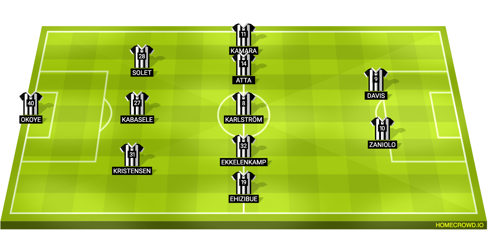 Probable Lineup (3-5-2): Okoye; Kristensen, Kabasele, Solet; Ehizibue, Ekkelenkamp, Karlstrom, Atta, Kamara; Zaniolo, Davis