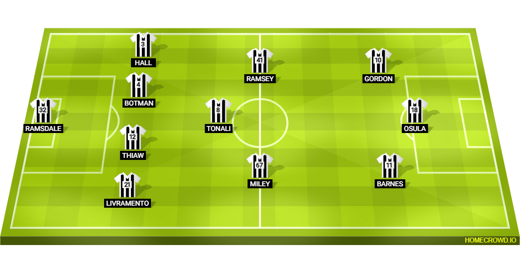 Probable Lineup (4-3-3): Ramsdale; Trippier, Thiaw, Botman, Hall; Miley, Tonali, Ramsey; Barnes, Osula, Gordon