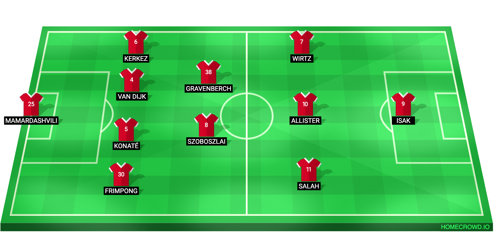 Probable Lineup (4-2-3-1): Mamardashvilli; Frimpong, Konate, van Dijk, Kerkez; Gravenberch, Szoboszlai; Salah, Mac Allister, Wirtz; Isak