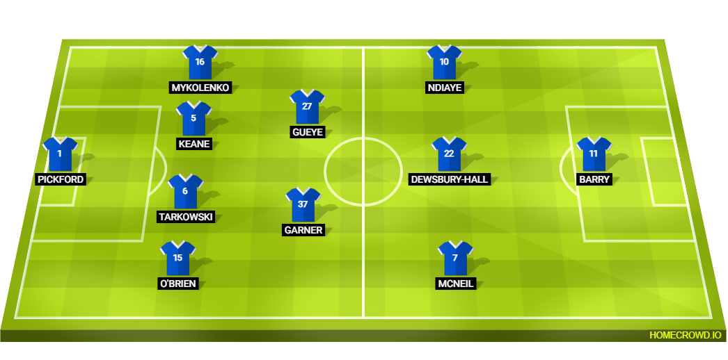 Probable Lineup (4-2-3-1): Pickford; O’Brien, Tarkowski, Keane, Mykolenko; Garner, Gueye; McNeil, Dewsbury-Hall, Ndiaye; Barry