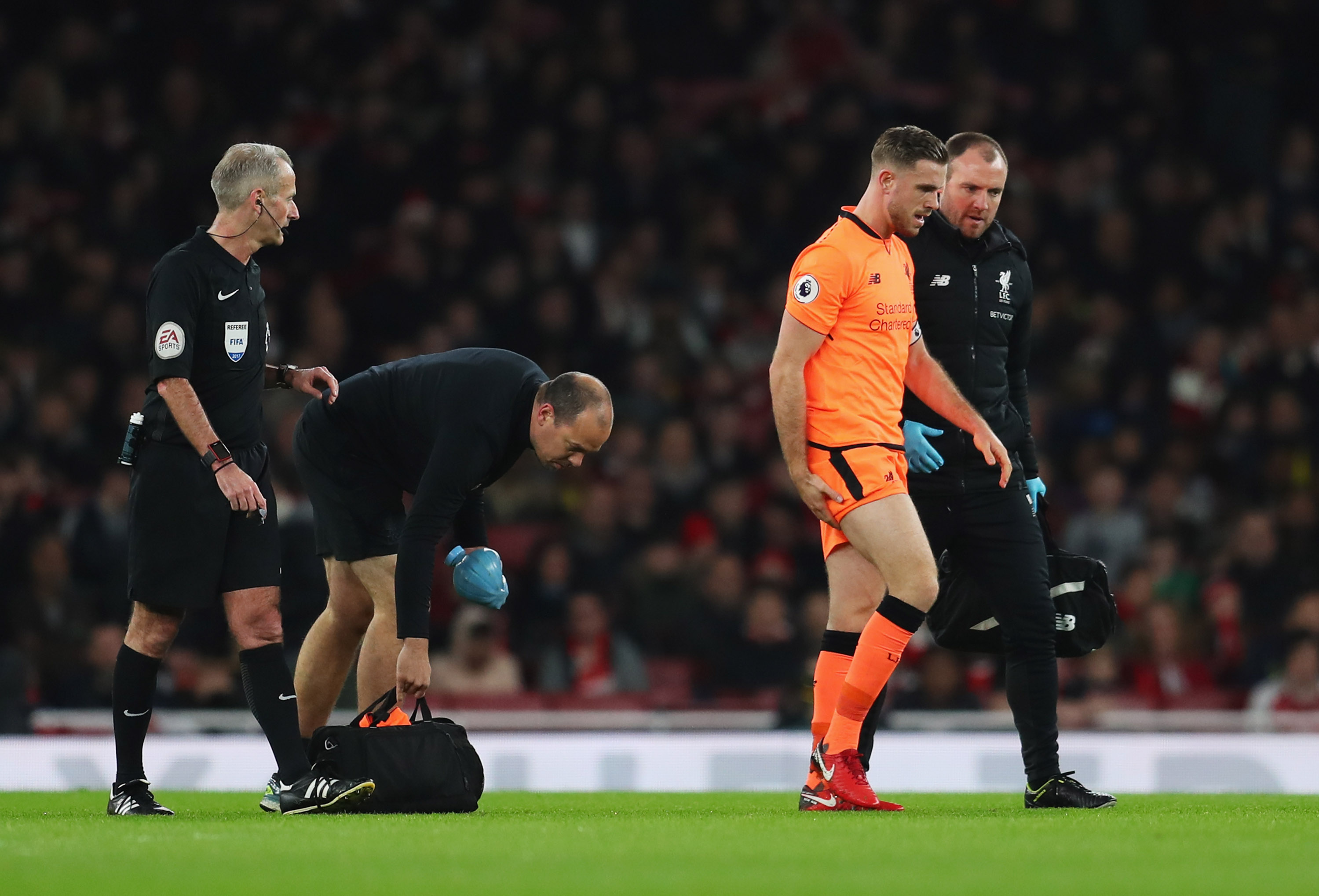 Captain Jordan Henderson is among the Liverpool players on the sidelines as the Reds prepare to host Swansea City at ...